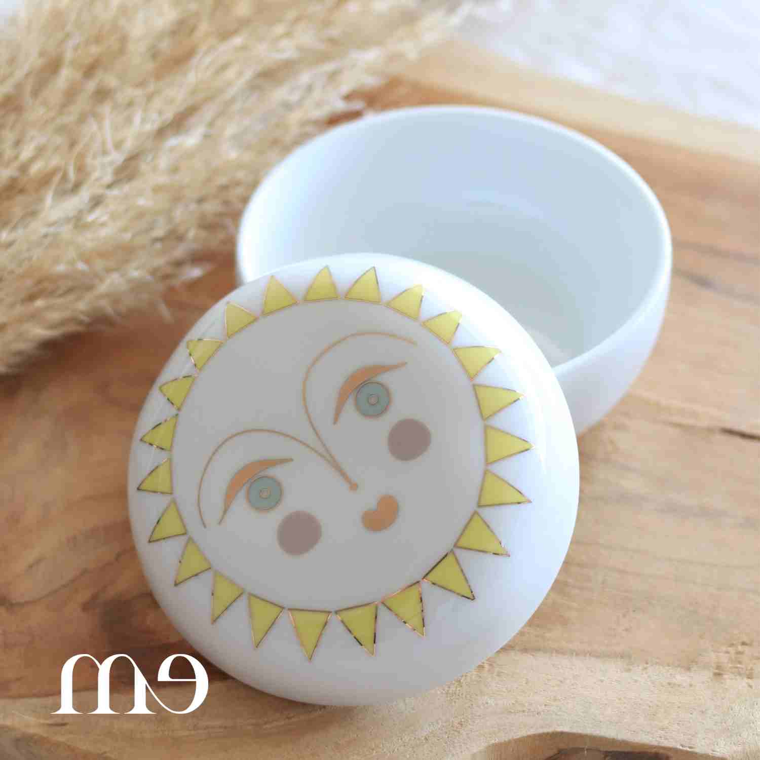 Cette jolie boîte en porcelaine blanche est sublimée par un visage coloré et expressif sur le couvercle. À la fois originale et pleine de vie, elle accueille tes petits objets avec style et bonne humeur.