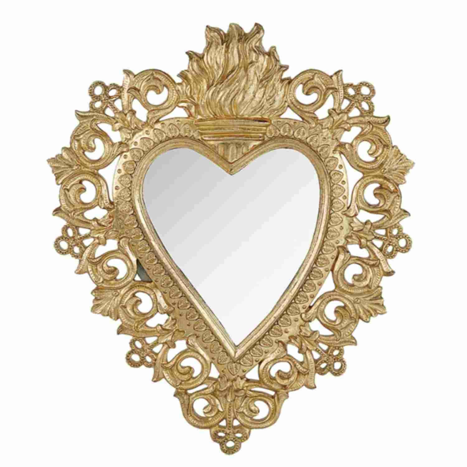 Ce miroir en forme de cœur ex voto apporte du caractère à ta déco. Avec sa finition dorée et ses détails soignés, il s’accroche facilement pour illuminer un mur avec douceur et symbolique.