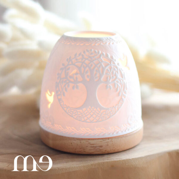 Illuminez votre espace avec ce photophore en porcelaine, sublimé par un arbre de vie finement perforé.