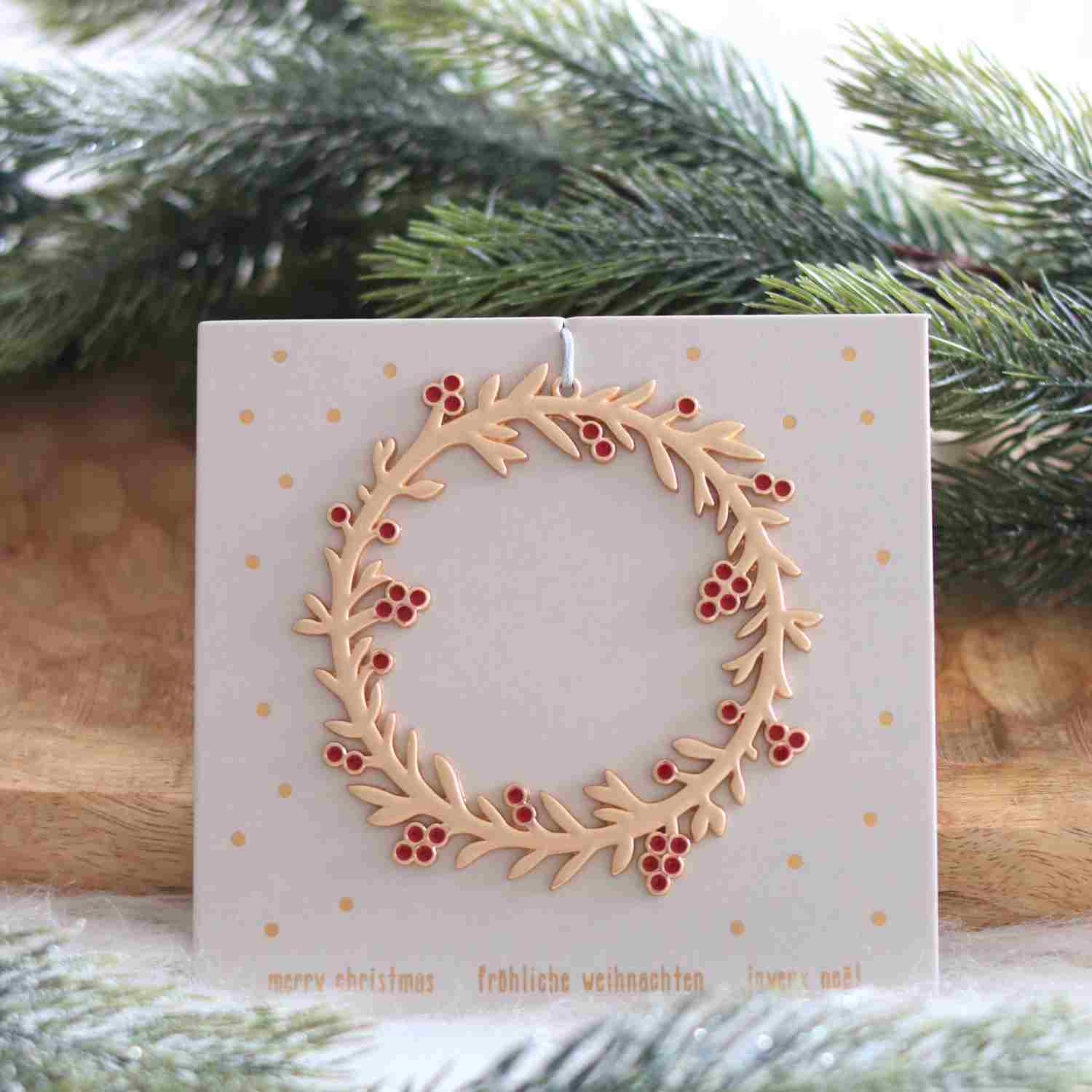 Cette couronne de houx rouge signée Räder est une délicate suspension en métal doré, sublimée par de petites baies rouges qui apportent chaleur et éclat à ta déco.